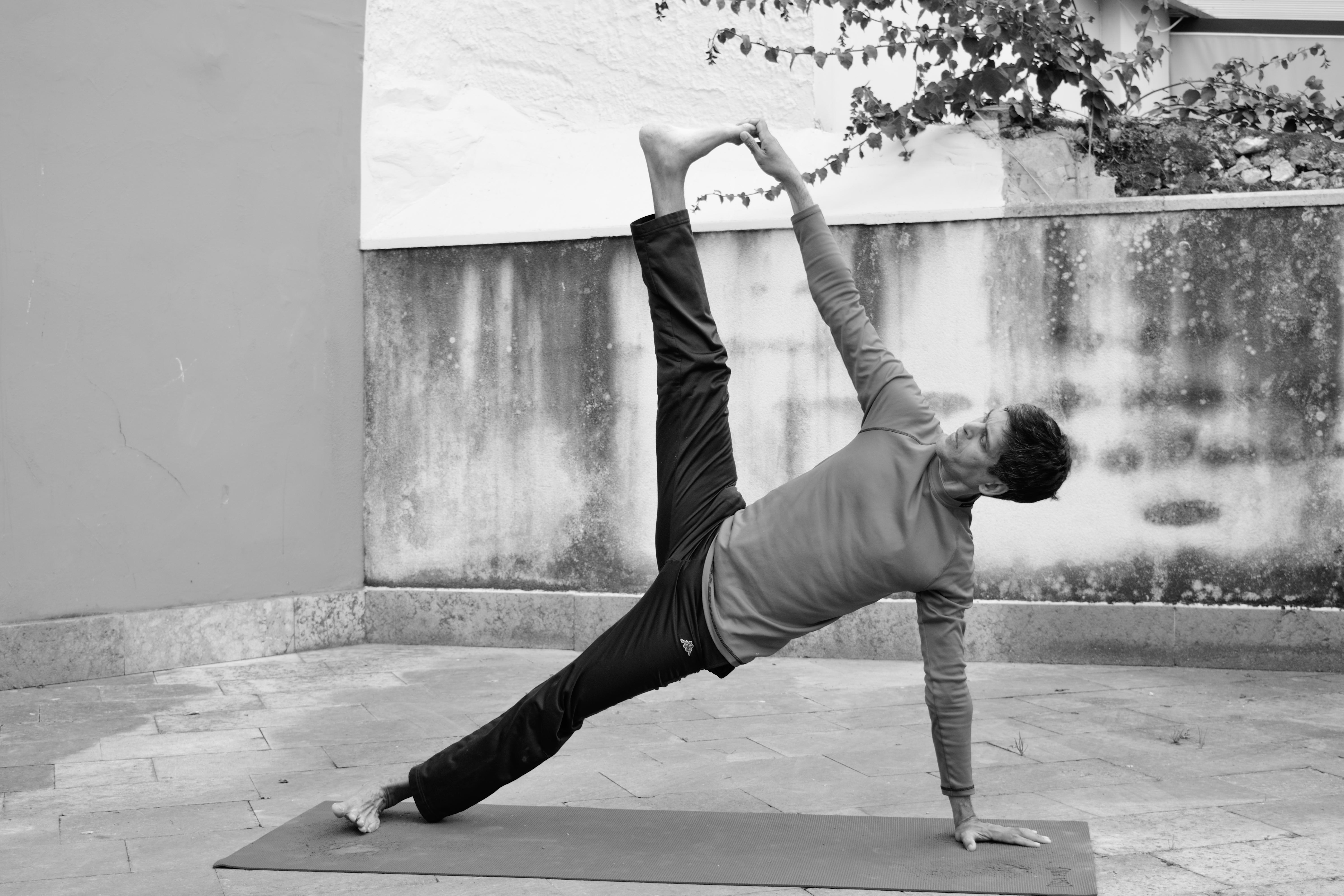 The beauty of this pose is that besides being aesthetically attractive, it can be attempted at all levels. Beginners do not need to lift the top leg but can simply raise one hand perpendicular to the ground. After a few months, as you gain confidence, you can attempt more difficult variations.